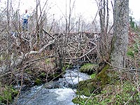 Wayne Groom stands on top of the beaver dam at the outflow of Thunder Lake. With little flowage and high barriers, trout that emigrate to spawn will be unable to return to the lake.