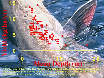 Vezina, R. 1978. La Profondeur Moyenne: Un outil pour evaluer le potentiel des plans d'eau a truite mouchetee pour la peche sportive. Ch 15. Ministere Du La Chasse et De La Peche Direction De L'Amagement et De L'Exploitation de la Fauna. Quebec