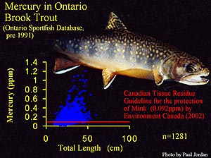 Parks, J.W. 2005. Are brook trout stocking programs increasing the risks of mercury poisoning to wildlife in Ontario? In Munro, S., G.D. Dixon, and A.J. Niimi (eds) Proceedings of the 32nd Annual Aquatic Toxicity Workshop, October 3-5, 2005 Waterloo, Ontario. Can. Tech. Rep. Fish Aquat. Sci. #2617 Department of Fisheries and Oceans, Ottawa, ON